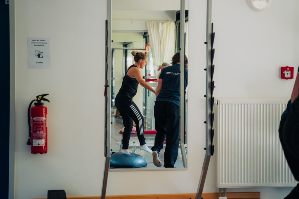 Dafür bieten wir Zeitslots für betreutes Training unter der Anleitung von erfahrenen Trainerinnen und zertifizierten Therapeut/innen an.